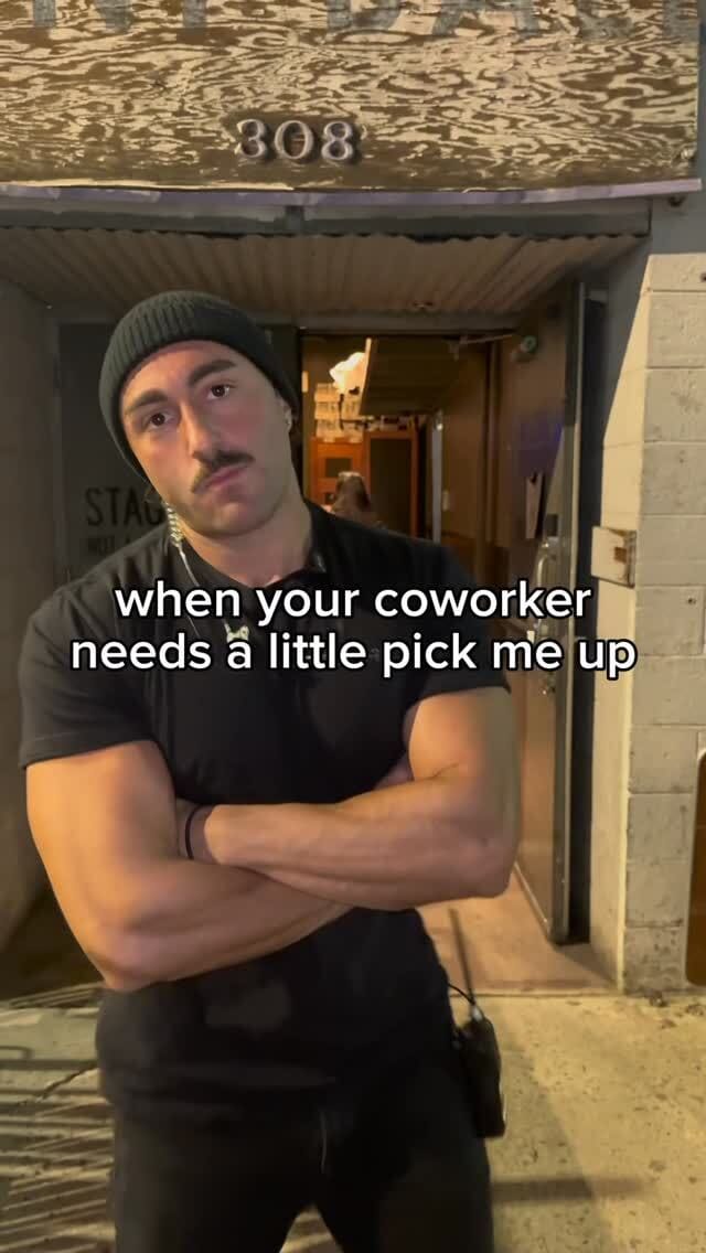 Film someone in your office or shop looking sad or tired. Add the “POV: when your coworker needs a little pick-me-up” text on screen, and cut to a clip of you spinning them in a circle. It’s silly and cute. The end.